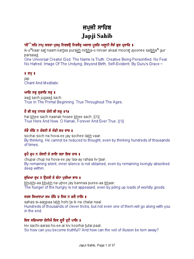 Pdf Japji Sahib Path Text In Punjabi Hindi And English Pdf